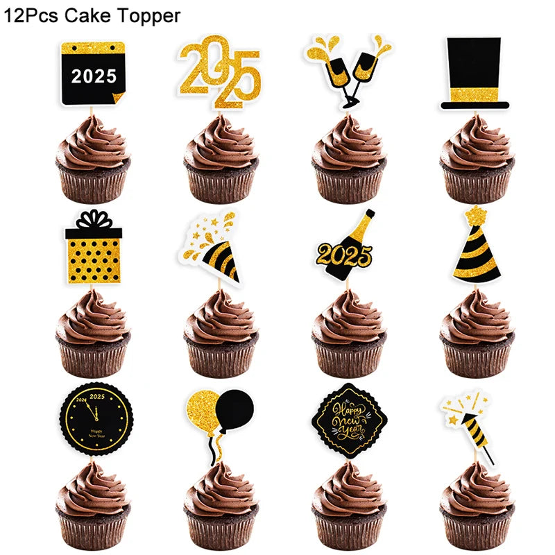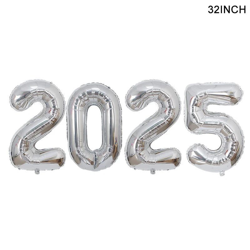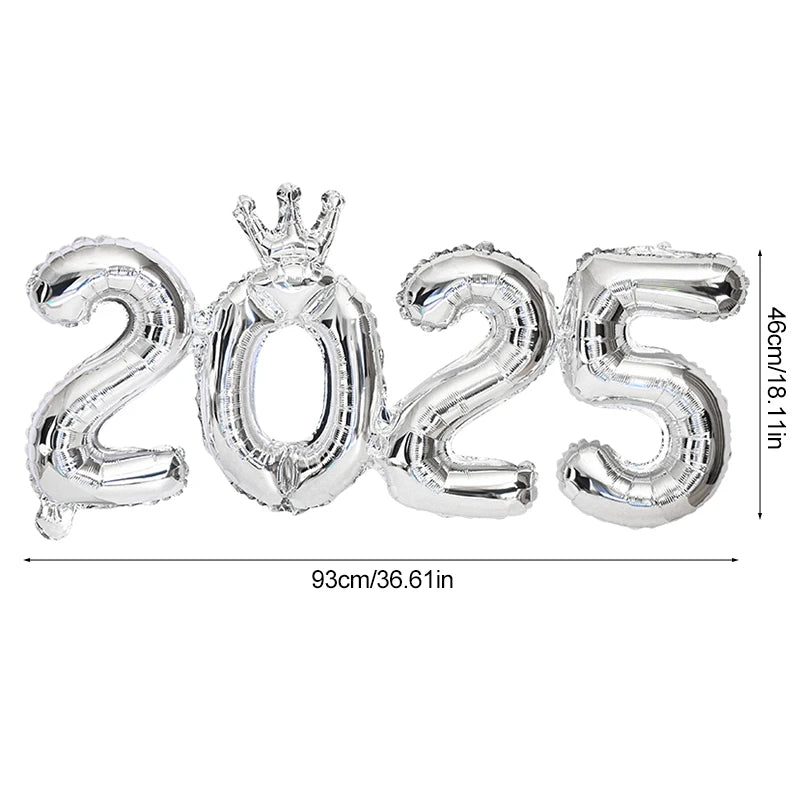 2025 Crown Number Foil Balloons Happy New Year Eve Party Decoration Photo Booth Props Supplies Christmas Home Decor Navidad 2024