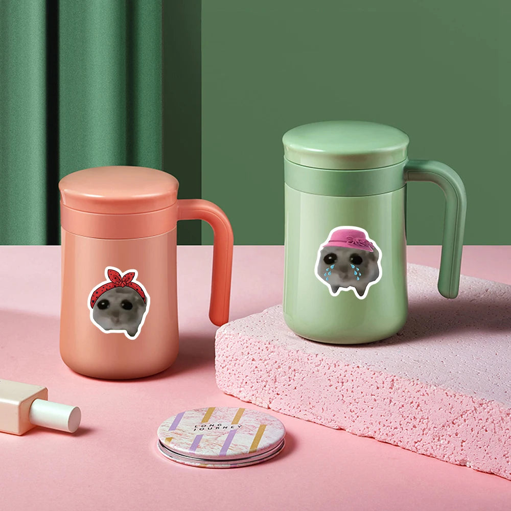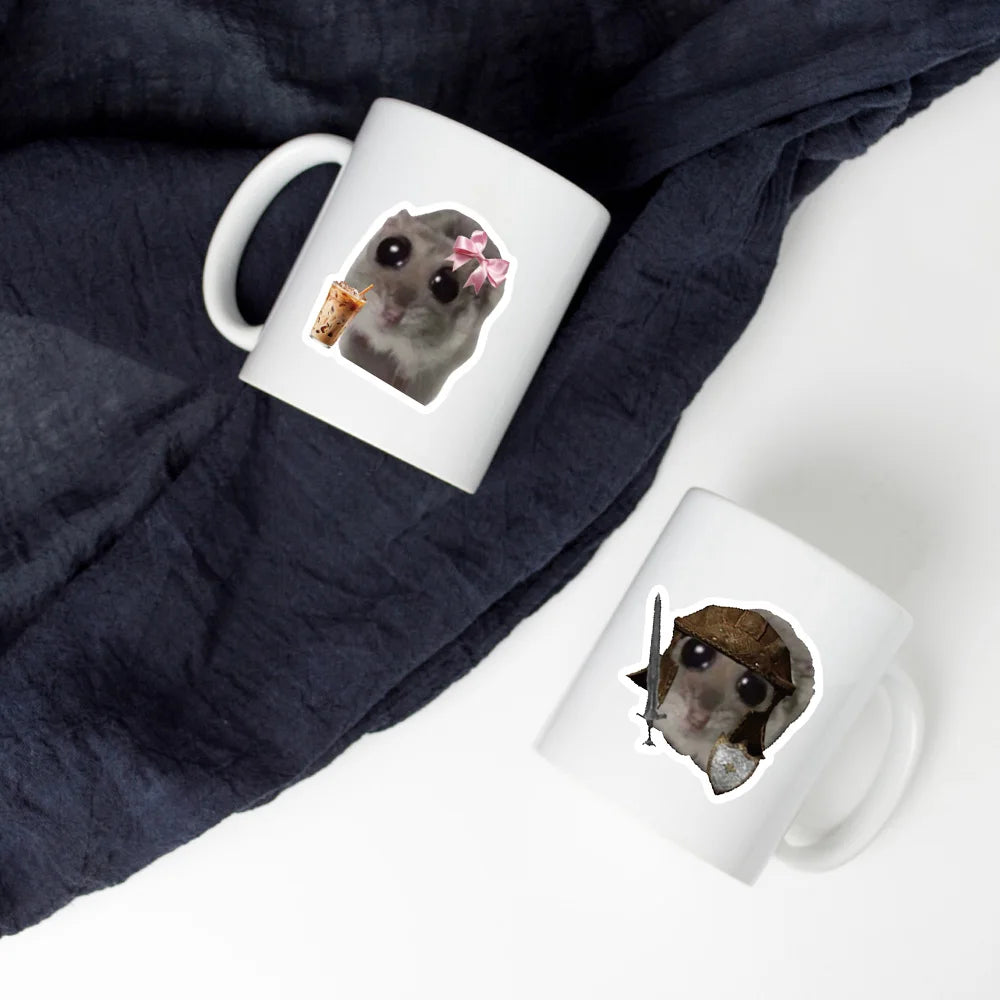 56PCS Sad Hamster Meme Cute Mouse Fun Pattern Sticker Aesthetic Kawaii Decals Cute Cartoon Laptop Luggage Bicycle Diary Stickers