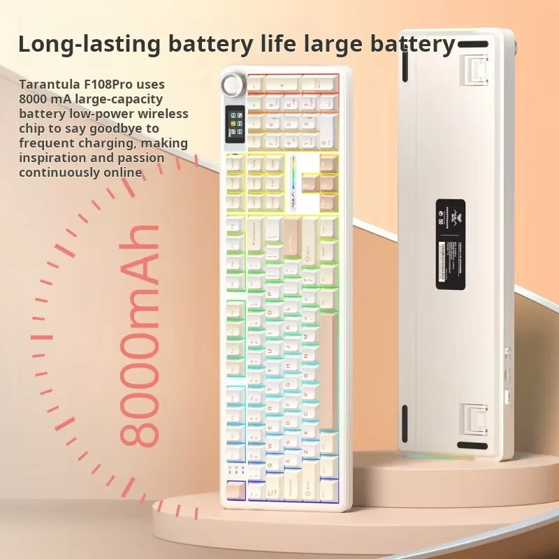 AULA F108Pro/F108 Wireless Bluetooth tri-mode connection, multi-functional display, Gasket structure, RGB lighting effects