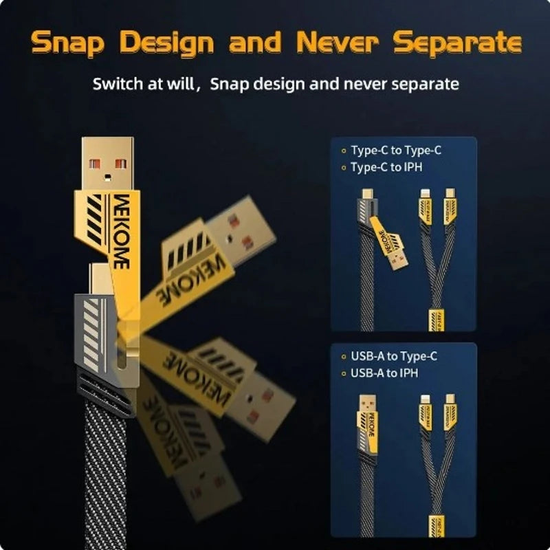 Four-in-one Multi-function Data Cable, USB-A/IPH/TYPE-C Port Conversion, Suitable for Charging Various Mobile Phone Models.