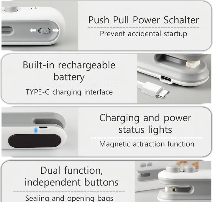Mini Bag Sealer – USB Rechargeable Snack Packaging Sealer with Built-In Magnet | Portable Handheld Heat Sealing Machine for Chips, Cookies & Food Storage