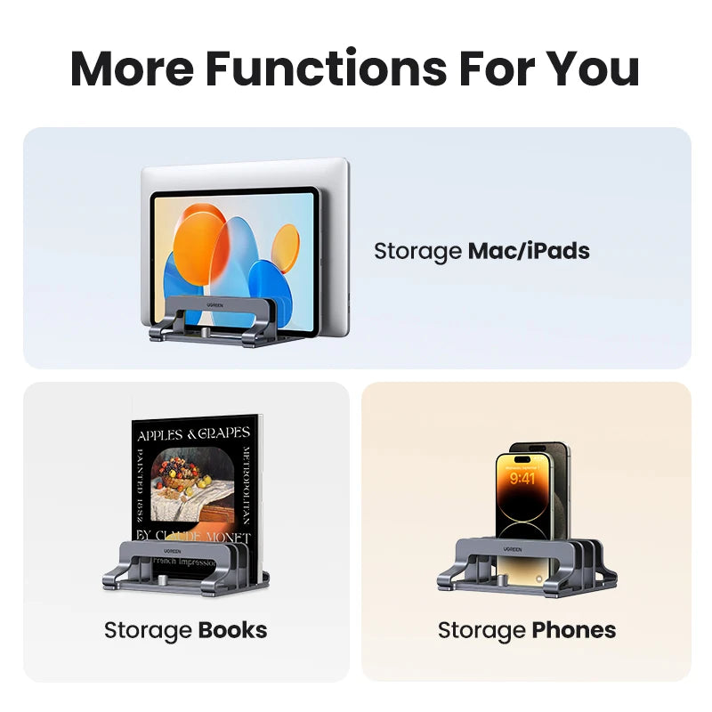 UGREEN Vertical Laptop Stand For MacBook Air Pro Triple Slots Aluminum Notebook Stand For MacBook Pro Tablet iPad Phone Holder