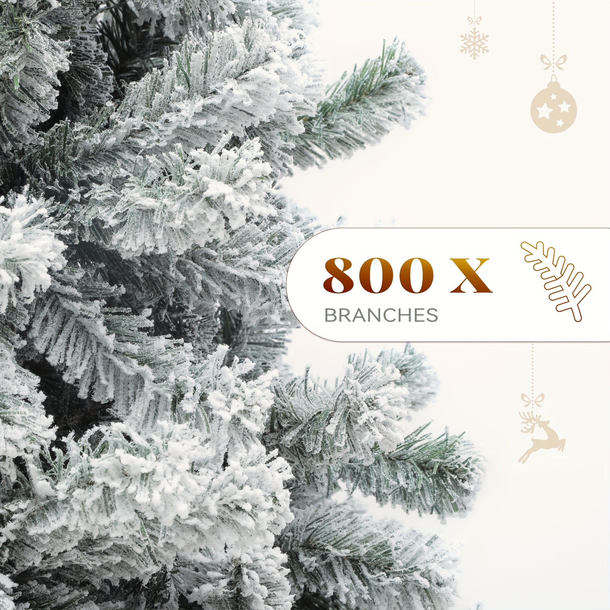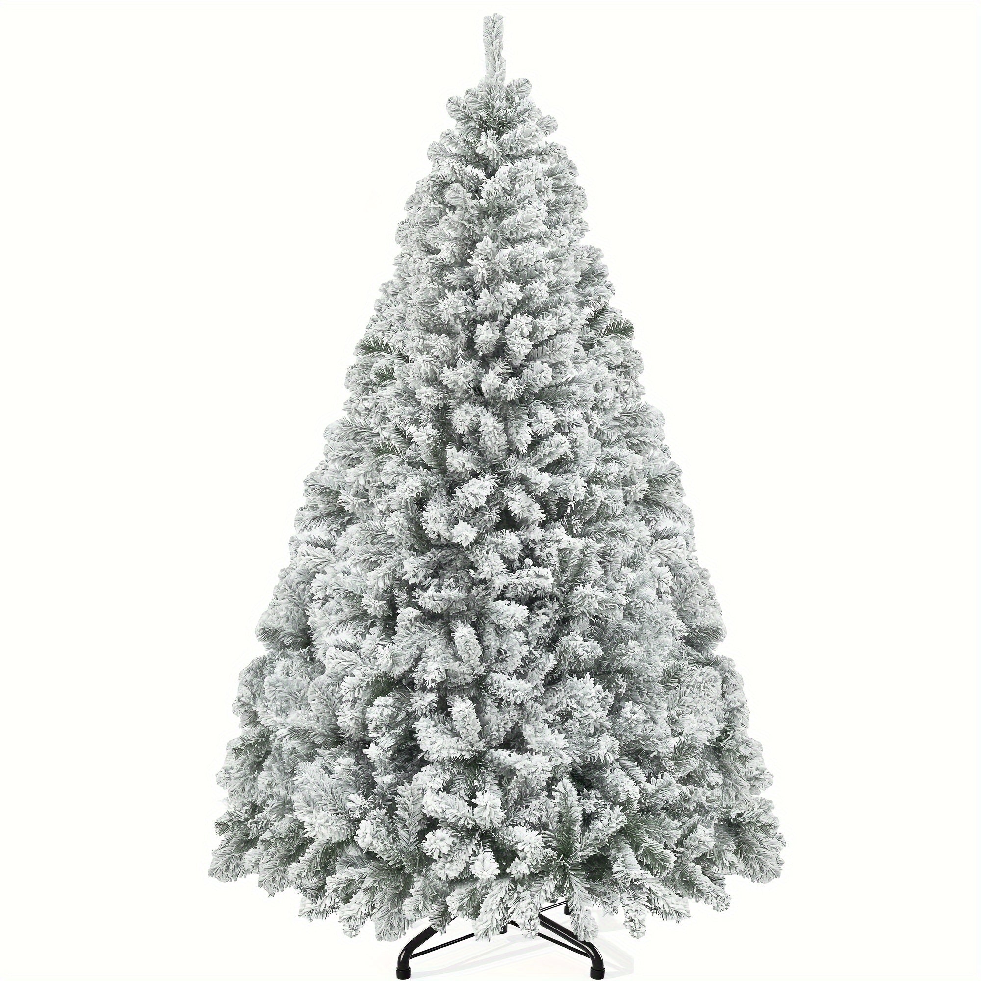 YardFunK 6ft Artificial Christmas Tree, Full Snow Flocked Xmas Tree With Foldable Metal Stand 880 Flocked Tips For Home Party Decorations, 182cm